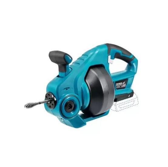 18V aku čistač cijevi DEDRA DED7081 koristan je alat u svakom domu ili DIY radionici. Zahvaljujući baterijskom napajanju uređaj je izuzetno mobilan što mu omogućuje korištenje i tamo gdje nemamo pristup izvoru struje. Kompaktna veličina uređaja omogućuje jednostavan transport bez potrebe za nošenjem velikih zavojnica tradicionalne spirale za deblokiranje cijevi. Baterijski čistač DEDRA DED7081 će odčepiti cijevi promjera 20-50 mm, a dužina spirale od 7 m omogućuje vam da dođete do dubokih začepljenja. Promjer spirale je 7 mm, što joj osigurava dovoljnu čvrstoću uz malu težinu. Brzina rotacije je do 560 okretaja u minuti, što će vam omogućiti učinkovito uklanjanje blokade. Akumulatorska cijevna spirala omogućuje automatsko uvlačenje i namatanje spirale naginjanjem ručice. Osim toga, klip vam omogućuje blokiranje spirale, tako da možete izvući predmet koji je uzrokovao blokadu. Udobna ručka osigurava sigurno držanje, a dodatna gumena obloga povećava udobnost rada. Značajke 18V DEDRA DED7081 bežičnog gurača cijevi: