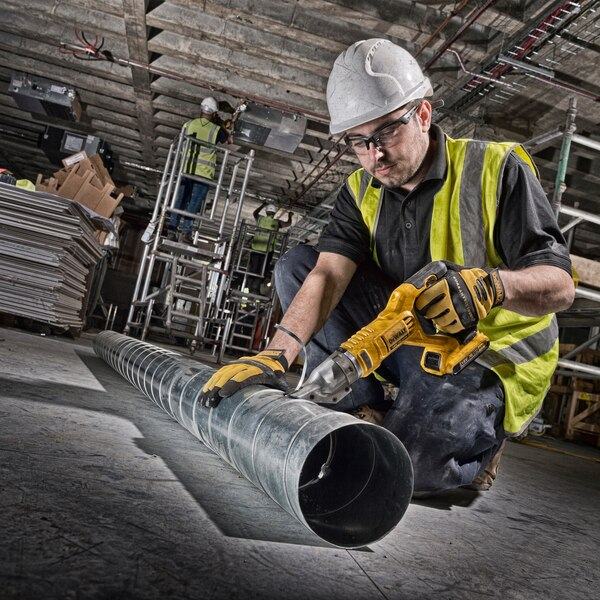 Dewalt DCS491N je akumulatorski rezač lima - škare za lim, kompaktne i lagane. D ručka za jednostavnije i udobnije rukovanje u svim položajima. LED svijetlo osvjetljava područje rada u slučajevima smanjene vidljivosti. Prekidač s regulacijom broja okretaja. Ispručuje se bez baterija i punjača, u kartonskoj kutiji. https://www.youtube.com/watch?v=M9kE5VMxFE4 Napon akumulatora 18 V - XR Vrsta akumulatora Li-ion Brzina bez opterećenja 0-2450 o / min Kapacitet rezanja u metalu - 1,3mm Kapacitet rezanja u inoxu - 1,0mm Težina 1,8 kg
