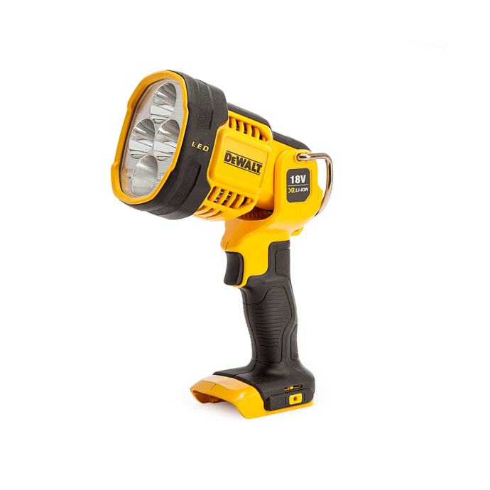DEWALT aku svjetiljka DCL043-XJ 18V bez baterije. Sadrži dvije postavke svjetline za fleksibilnost, okretnu glavu i kuku za remen za svestranost i preliveni poklopac leće za izdržljivost. Solo model – isporučuje se bez akumulatora i punjača