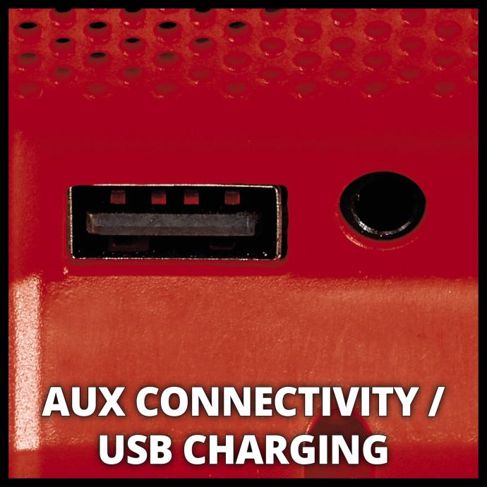 Einhell TC-SR 18 Li BT - Solo bežični zvučnik olakšava povezivanje sa svim uređajima s omogućenim Bluetoothom kao što su pametni telefoni ili tableti. Uz to, zvučnik ima AUX priključak za spajanje MP3 playera ili pametnih telefona, plus USB priključak za punjenje pametnog telefona, tableta ili MP3 playera. Intuitivna upravljačka ploča olakšava korištenje. Kao član serije Power-X-Change, sve visokokvalitetne litij-ionske punjive baterije iz serije sustava mogu se koristiti u kombinaciji s bežičnim zvučnikom. Ovaj proizvod dolazi bez baterije i punjača koji su dostupni zasebno, na primjer kao praktičan starter set. Solo model – isporučuje se bez akumulatora i punjača