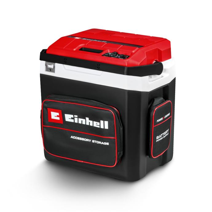 Einhell akumulatorska prijenosna rashladna kutija TE-COL 18/27 Li-Solo idealna je za putovanja, izlete ili pauze na gradilištu – bilo da želite rashladiti piće ili održati obrok toplim. Kao član Power X-Change obitelji, kompatibilna je sa svim baterijama iz tog sustava, ali uz nju dolaze i kabeli za priključak na 230 V kućnu utičnicu i 12 V utičnicu u vozilu. Uređaj automatski prepoznaje izvor napajanja, pa je moguće prethodno hlađenje kod kuće, a zatim nastavak rada u vozilu. Za 12 V način rada integrirana je zaštita od pražnjenja akumulatora automobila. Kapacitet od 27 litara omogućuje pohranu do 36 limenki (0,33 l), 20 boca (0,5 l) ili 6 velikih boca (1,5 l). Ugrađena je pregrada za organizaciju prostora, praktični otvarač za boce te više džepova za dodatke, uključujući držač za bateriju i prostor za zamjensku bateriju. Temperatura hlađenja može se podešavati do 20 °C ispod temperature okoline, dok funkcija grijanja doseže do 60 °C. Zahvaljujući energetskoj učinkovitosti razreda D, uređaj ima nisku potrošnju energije. Za jednostavno prenošenje tu su podesiva naramenica s jastučićem i velika ručka koja može držati poklopac otvorenim. Baterija i punjač se prodaju zasebno. Solo model – isporučuje se bez akumulatora i punjača