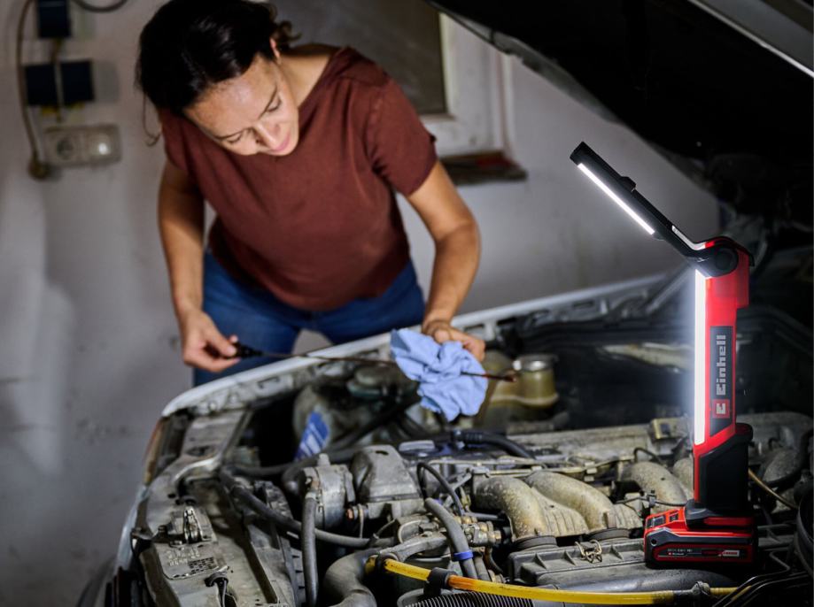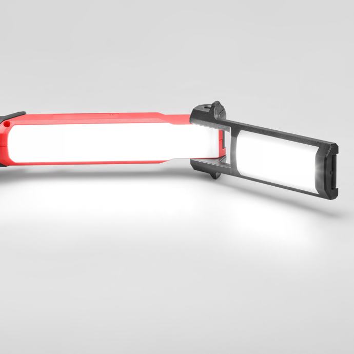 Einhell akumulatorska svjetiljka TE-CL 18/1000 Li-Solo praktičan je izvor svjetla koji osigurava snažno i pouzdano osvjetljenje u svim uvjetima rada, bilo u radionici, garaži ili na gradilištu. Zahvaljujući Power X-Change sustavu, kompatibilna je sa svim baterijama iz iste serije, što omogućuje veliku fleksibilnost. Opremljena s 15 LED dioda i svjetlosnim tokom od 1000 lumena, pruža snažno neutralno bijelo svjetlo (5700 K) na udaljenosti do 5 metara. Sklopiva svjetlosna glava s tri načina rada omogućuje prilagodbu prema potrebi – svijetle obje ploče ili svaka zasebno. Kompaktna i lagana, s mekanom ručkom i mogućnošću pričvršćivanja pomoću ušica i kuke, svjetiljka je jednostavna za transport i upotrebu na različitim lokacijama. Isporučuje se bez baterije i punjača. Solo model – isporučuje se bez akumulatora i punjača