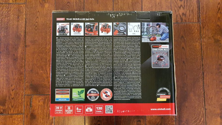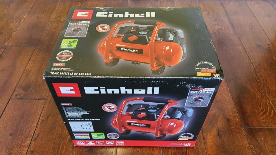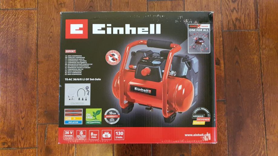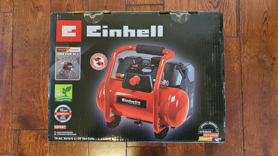 Prodajem Einhell TE-AC 36/6/8 Li OF Set akumulatorski kompresor, novo i nekorišteno.