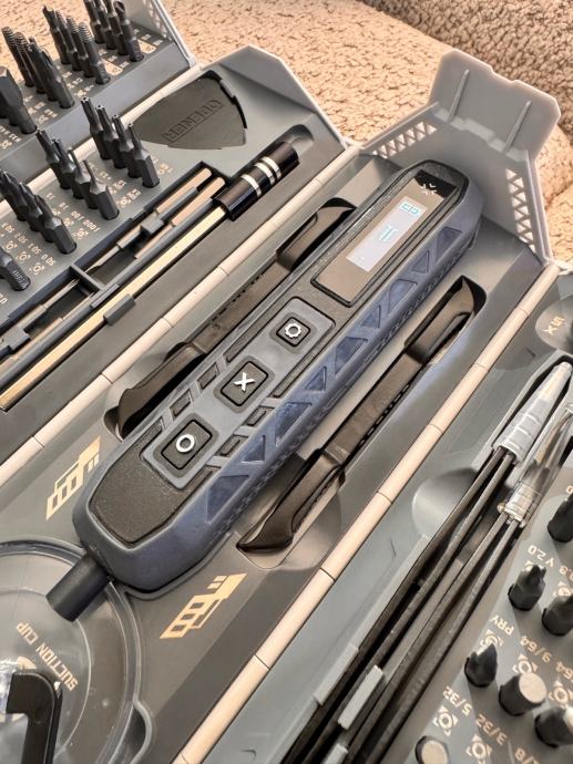 Jakemy JM-8193 je elektronički set odvijača prikladan za razne zadatke, od kućnih popravaka do profesionalnog održavanja. Višenamjenska ručka nudi opcije momenta s tri brzine, prikladne za sastavljanje i rastavljanje modernih visokotehnoloških uređaja. Kada se ne koristi, ručka odvijača se automatski isključuje, štedeći energiju baterije, i automatski se aktivira pritiskom na gumb. Jedinstveni dizajn sklopivog seta drži sve nastavke i pribor urednima. Priloženi set nastavka od 4 mm izrađen je od izdržljivog CR-V materijala za cjeloživotnu upotrebu. Kompaktna veličina kućišta, samo 210 x 85 x 82 mm.