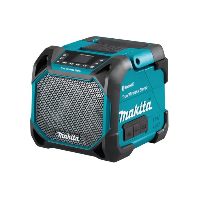 Akumulatorski Bluetooth zvučnik DMR203 nudi dvostruko napajanje putem AC izvora i Makita akumulatora. Opremljen tehnologijom True Wireless Stereo (TWS), omogućuje bežično uparivanje dva zvučnika DMR203 za uživanje u dubokom, bogatom i moćnom stereo zvuku. Način MY EQ (moj ekvilizator) omogućuje prilagodbu visokih, srednjih i bas tonova za optimalnu kvalitetu zvuka. Zvučnik ima USB priključak za punjenje pametnih uređaja i pretinac za držanje mobilnih uređaja, dok LED zaslon prikazuje naziv reprodukcijske datoteke. Osim toga, nudi poboljšanu zaštitu od prašine i vode prema standardu IP64. Z linija – isporučuje se bez akumulatora i punjača