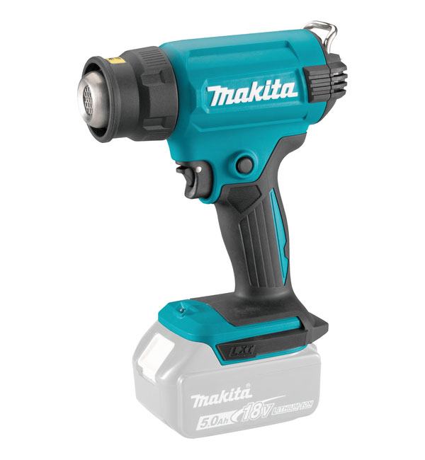 Akumulatorski fen za vrući zrak DHG180ZK dolazi s ravnim kućištem koje omogućuje polaganje fena ravno na radnu površinu, idealno za širok raspon primjena kao što su postavljanje tapeta, sušenje, uklanjanje boje i toplinsko sužavanje cijevi. Fen je kompatibilan s trenutnim mlaznicama za električne alate, a zamjena mlaznice je jednostavna, bez dodirivanja vrućih dijelova. Ugrađeno LED svjetlo s funkcijom svijetljenja nakon završetka rada pruža dodatnu praktičnost, dok ergonomska ručka omogućuje lako rukovanje. Z linija – isporučuje se bez akumulatora i punjača