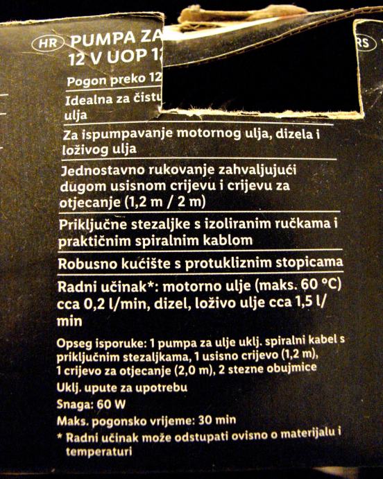Parkside ULTIMATE SPEED pumpa za ulje itd 12V UOP 12 C1, 60 watta NOVO