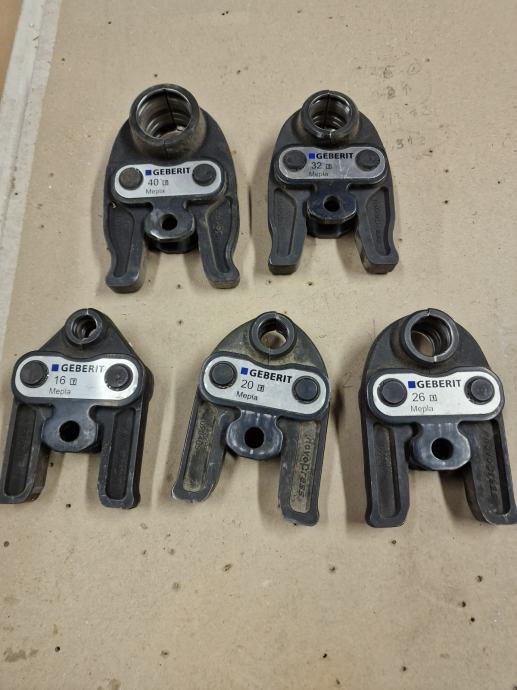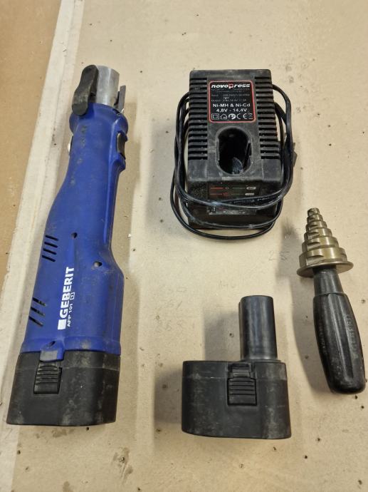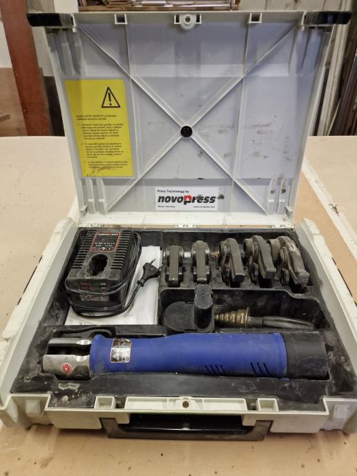 U kompletu je 5 klješta (16,20,26,32,40 mm) in mašina sa dve baterije in pounjač, izpravno. Ako imate koje druge baterije, može se napraviti pretvorniki da se mogu upotrebiti za tu mašinu.