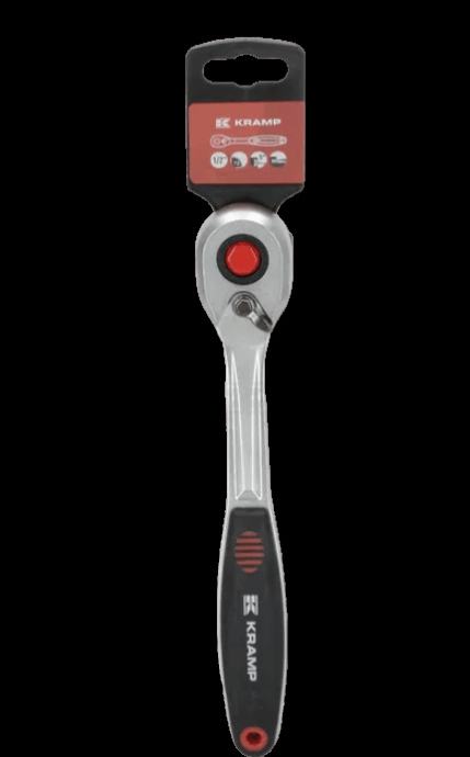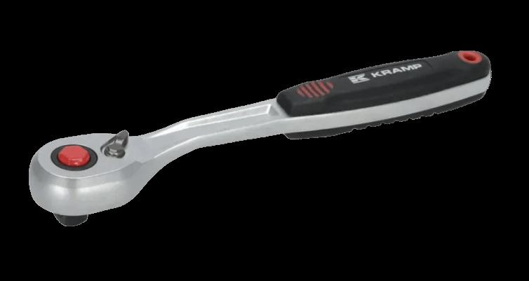 Profesionalna reverzibilna čegrtaljka s finim zubima sa sigurnosnom bravom i setom nasadnih nasadnica, kvadratni pogon 1/2", izrađena od krom-vanadij čelika. Brza promjena nasadnih nasadnica pritiskom palca na gumb za otpuštanje. Visokoprecizan zaporni mehanizam, gumb za otpuštanje za brzu i učinkovitu promjenu utičnice, dobro zadržavanje utičnice, pomaknuta ručka za korištenje na teško dostupnim mjestima, izvrsna zaštita od korozije, bez stvaranja hrđe