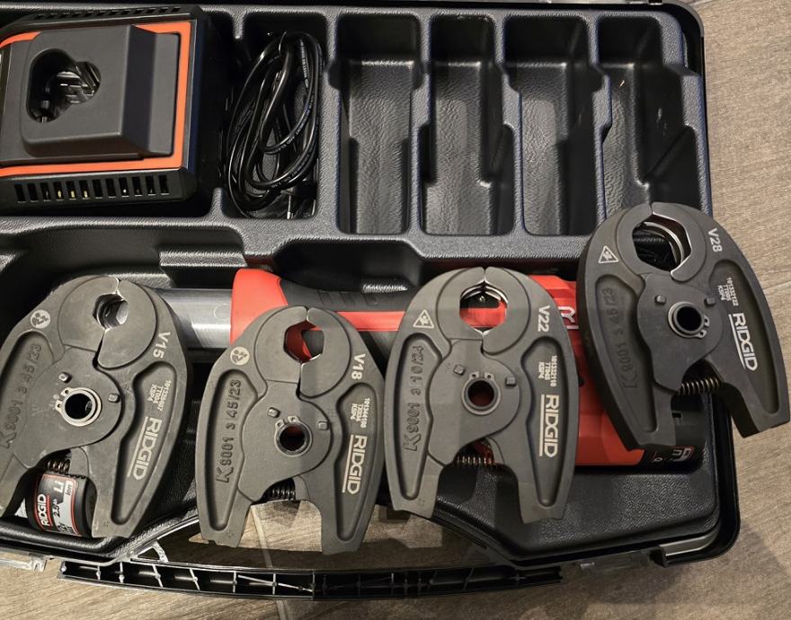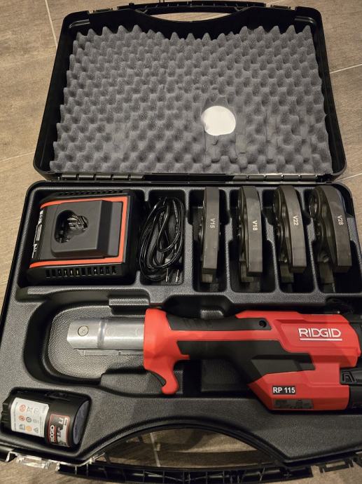 Prodajem potpuno novu, nekorištenu prešu za CU/INOX Ridgid RP115-V15-18-22-28, s novim nekorištenim čeljustima 15/18/22/28mm, dvije baterije i punjač u originalnom koferu.