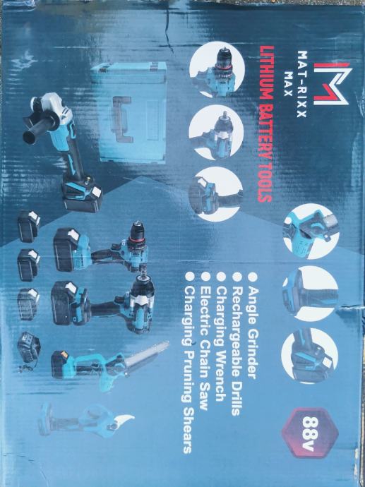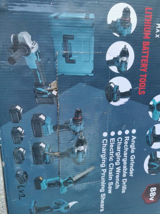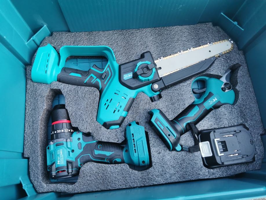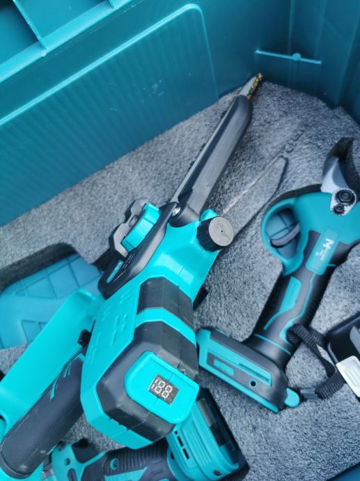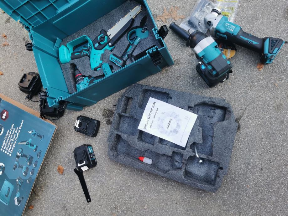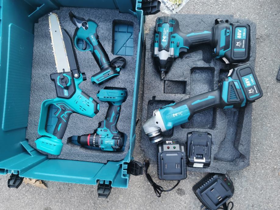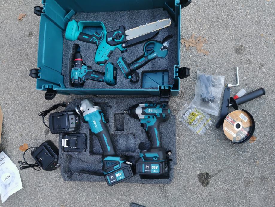 Set od 5 alata u koferu i 3 velike baterije i dva punjaca.