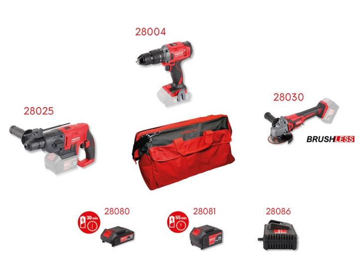 Prikladan set FESTA Power tools baterijskih alata s gratis praktičnom torbom. Set najčešće korištenih AKU strojeva za razne vrste radova, strojevi su dio FESTA SHARE20V sustava s mogućnošću korištenja. Li-ion baterije 2,0 Ah i 4,0 Ah u svim aparatima, u setu je i brzi punjač te baterije 4,0 i 2,4 Ah. Za normalan rad dovoljna je baterija kapaciteta 2,0 Ah (28080) - vrijeme punjenja 40 min., za rad s većim opterećenjem preporučujemo korištenje baterije kapaciteta 4,0 Ah (28081) - vrijeme punjenja 90 min. Li-ionska tehnologija koja se koristi u FESTA Power baterijama x tools nudi mogućnost ponovnog punjenja baterija u bilo kojem trenutku - bez smanjenja njihovog kapaciteta, Li-ionske baterije također se vrlo sporo samoprazne. Strojevi u setu 28004, 28025, 28030.