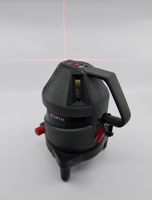 Generates a 360° horizontal line and four vertical lines at 90° degrees to one another. The lines are visible on the floor, walls and ceiling.