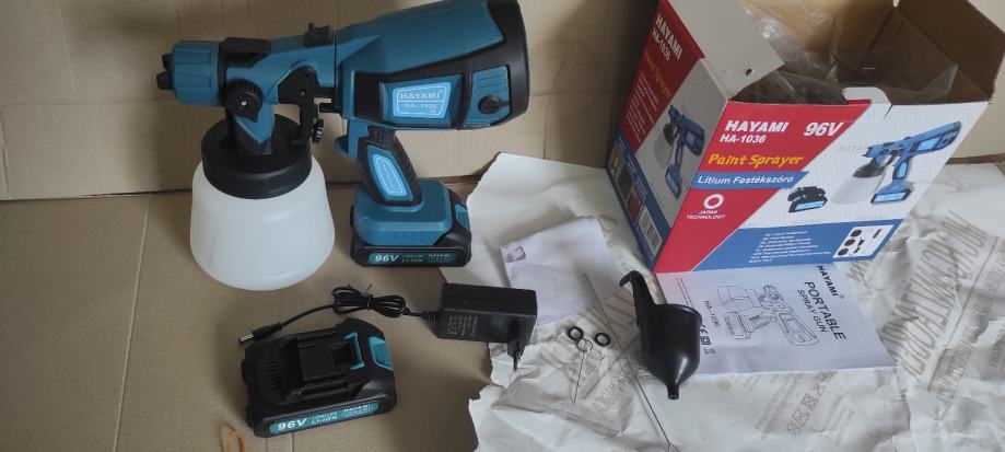 Prodaje se nekoristeni zračni pištolj,šprica na akumulator 2 kom. i punjač japanske tehnologije,sa priborom u kutiji,Bolja kvaliteta od vagnera.Bezprijekorno radi ,Plave boje kao MAKITAU kompletu su dvije punjive li- ion bsterije,koje dugo drže.Cijena 149 e.,ili po dogovoru,moguča dostava poštom.