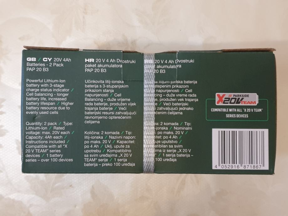 Prodajem komplet od dvije baterije Parkside 20V, 4Ah PAP 20-B3.