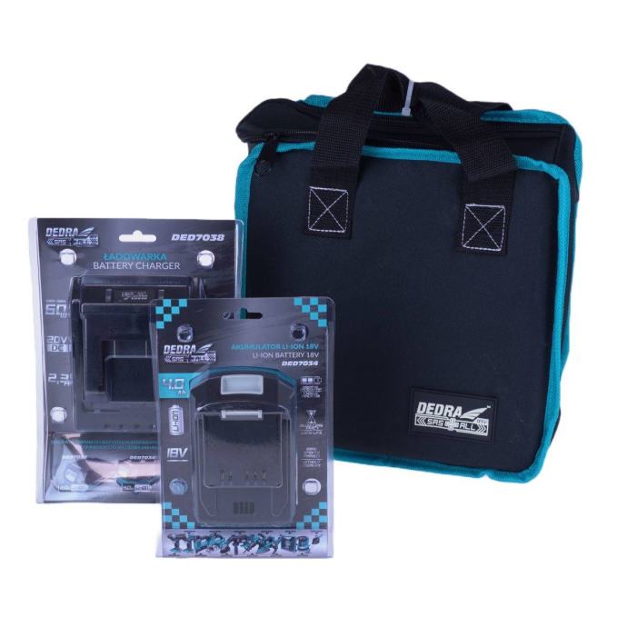 Baterija DED7034 kapaciteta 4.0Ah je izrađena u litij-ionskoj tehnologiji, što omogućuje punjenje baterija u bilo kojem trenutku bez efekta memorije. 3 LED diode smještene na kućištu baterije informiraju nas o trenutnom stanju napunjenosti (100% \ 50% \ zahtijeva punjenje). Donji dio kućišta prekriven je gumom za veću udobnost i sigurnost od slučajnog oštećenja. Indikator napunjenosti baterije Litij-ionska tehnologija * bez efekta pamćenja " Specifikacije: Napon - 18V
