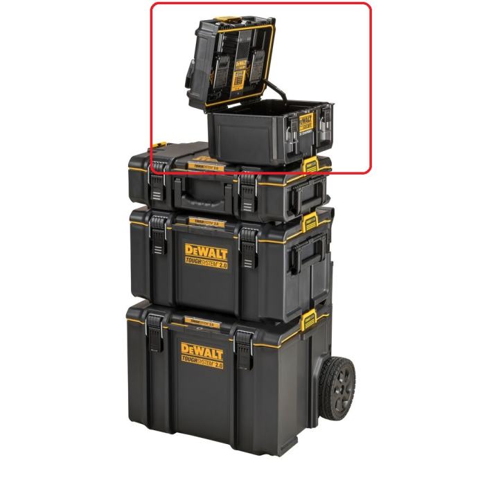 Kofer i punjač DeWalt DWST83471 ToughSystem 2.0 inovativno je rješenje za profesionalce koji cijene mobilnost, funkcionalnost i izdržljivost. Ovaj proizvod nije samo prijenosna jedinica za skladištenje baterija, već i stanica za punjenje baterija. Uz ToughSystem 2.0 DWST83471 rad na gradilištu postaje lakši i organiziraniji. Kutija/punjač idealna je za ljude koji rade u teškim uvjetima, gdje je potrebno sigurno skladištenje baterije i pristup pouzdanom izvoru napajanja. Skladištenje i punjenje u jednom. DeWalt DWST83471 ToughSystem 2.0 opremljen je s dva priključka za punjenje koji vam omogućuju istovremeno punjenje dviju 18V XR ili FlexVolt baterija. Uz to, proizvod nudi dva USB priključka - jedan unutarnji i jedan vanjski, što vam omogućuje punjenje dodatne opreme poput zvučnika, radija ili pametnog telefona. Kutija za alat u koju može stati do 12 baterija od 18 V 5,0 Ah s dodatnim prostorom za dvije baterije prilikom punjenja. Ovaj modul je također kompatibilan s drugim kutijama iz serije ToughSystem, što omogućuje jednostavan i siguran transport. Punjač DeWalt DWST83471 ToughSystem 2.0 neophodan je alat za svakog profesionalca. Olakšava organiziranje vašeg alata, pruža siguran i pouzdan izvor energije na gradilištu i nudi visoku razinu zaštite za vaš pribor. Snaga punjača: 360W