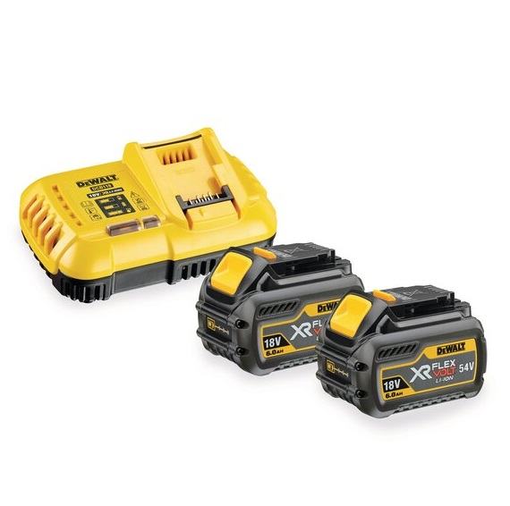 18V 2x6,0Ah Flexvolt Brzi punjač Tehnički podaci: Napon akumulatora 18 V / 54V Model DCB118T2 Kapacitet akumulatora 6,0 Ah Vrsta akumulatora Li-ion Kompatibilno sa svim Dewalt XR alatima i akumulatorima Vrijeme punjenja: 60 min (6,0 Ah) LED indikator prikazuje trenutno stanje napunjenosti baterije