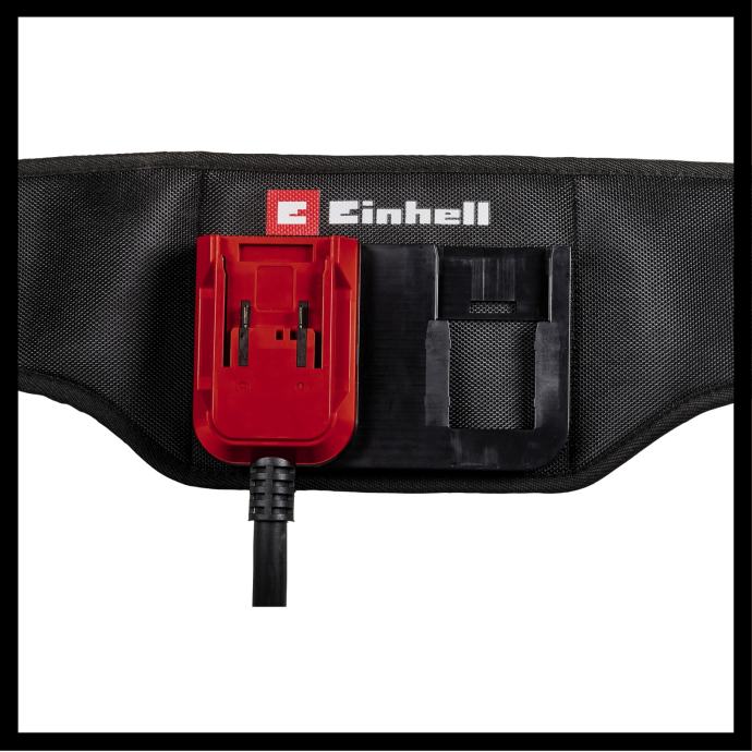 Remen za baterije Einhell GE-PB 36/18 Li praktičan je pratilac na svim poslovima koji uključuju korištenje Einhell Power X-Change alata. Omogućujući vam da nosite bateriju izravno na tijelu, remen smanjuje efektivnu težinu Einhell bežičnog alata. Robusnog dizajna, GE-PB 36/18 Li ima 150 cm dug podstavljeni remen za optimalnu udobnost. Rad s akumulatorskim alatima stoga je manje zamoran, osobito na intenzivnim zadacima. Ovaj višenamjenski član obitelji Power X-Change prikladan je za alate od 36 V i 18 V, pri čemu je drugi džep za baterije lako ukloniti kada je dovoljan rad od 18 V. Dobrodošla pomoć tijekom složenih poslova u uskim prostorima je dodatna kuka za kabel: pričvršćivanje kabela na praktičnu kuku ne može biti lakše. Zahvaljujući velikoj kopči, otvaranje pojasa je jednostavno i traje samo trenutak.