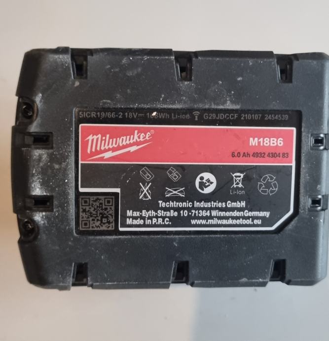 Milwaukee M18 REDLITHIUM korištena baterija 6AH 18v aku, ispravna.