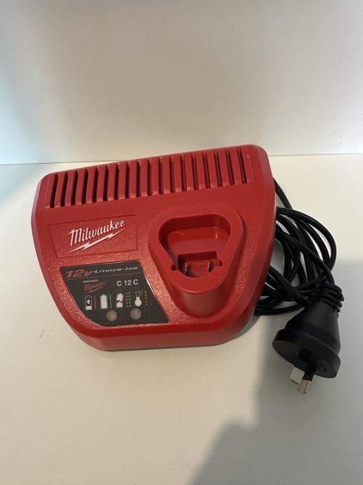 Prodajem punjač baterija za 12V li-ion Milwaukee alate. Original kabel utikač za AU/NZ standard (vidi sliku). Potrebno promijeniti utikač na EU (investicija od 80 centi).