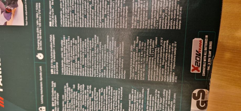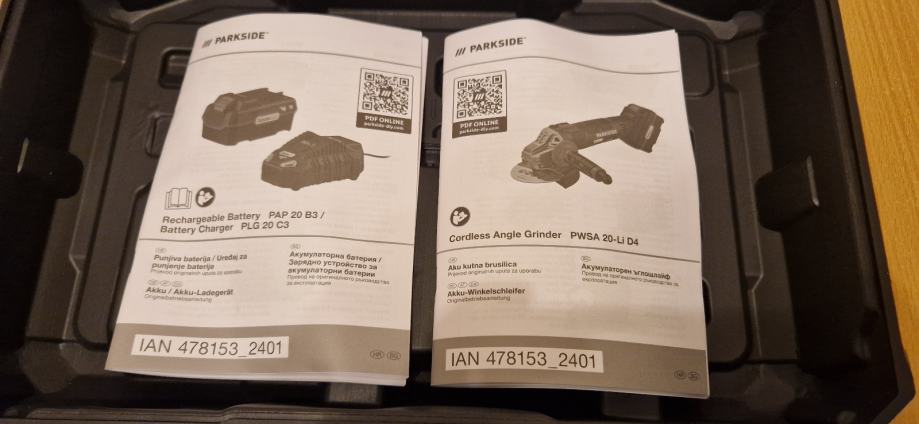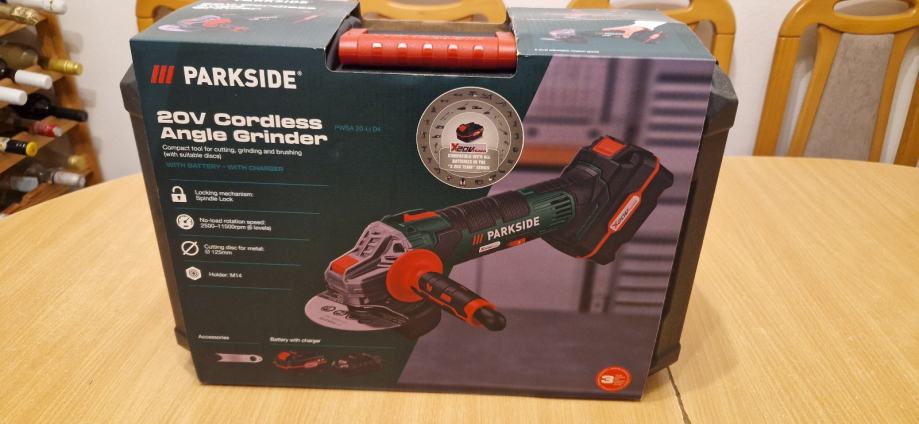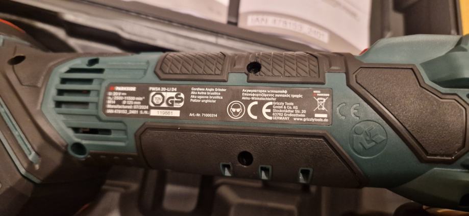 Potpuno nova i nekoristena aku flekserica / brusilica marke PARKSIDE..PWSA 20 Li D4 sa baterijom od 4 Ah..20 V ..i punjačem..