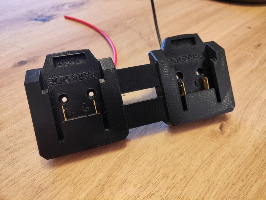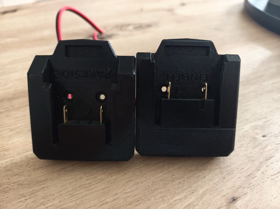 Konkretno na slikama možete vidjeti prihvat za Parkside X20, Einhell power X-change, Makita LXT, Bosch Pro, AEG bateriju te dvostruki prihvat za Parkside X20 baterije s ožičenjem u seriji kako bi dobili 40V. U ponudi su i prihvati za sve ostale poznatije proizvođače (aeg (ridgid), black & decker, bosch professional (pro, plavi), bosch power 4 all (zeleni), dewalt, einhell, enkho, ferm, ferrex, makita lxt i g seriju, matrix, metabo, milwaukee, my project, parkside, rida, ryobi, texas, villager, wurth, boxer, praktik...).