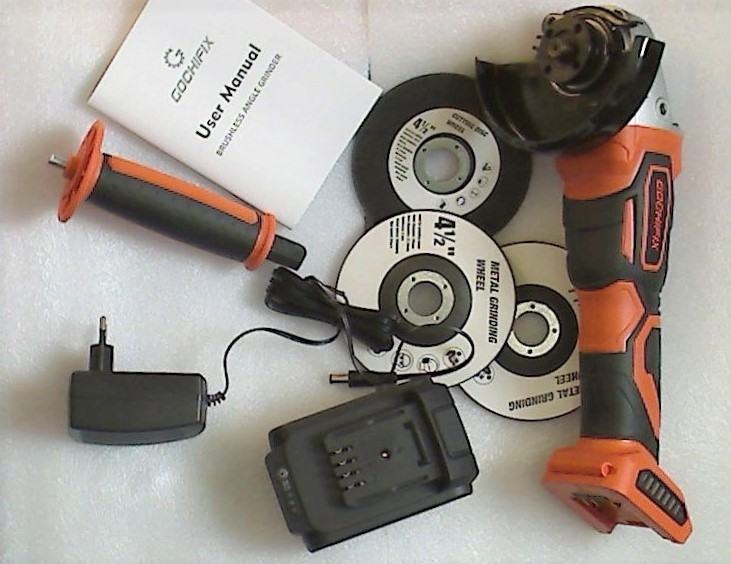 Dolazi s baterijom 20V 4Ah, punjačem drškom, ključem i 2 brusne ploče.