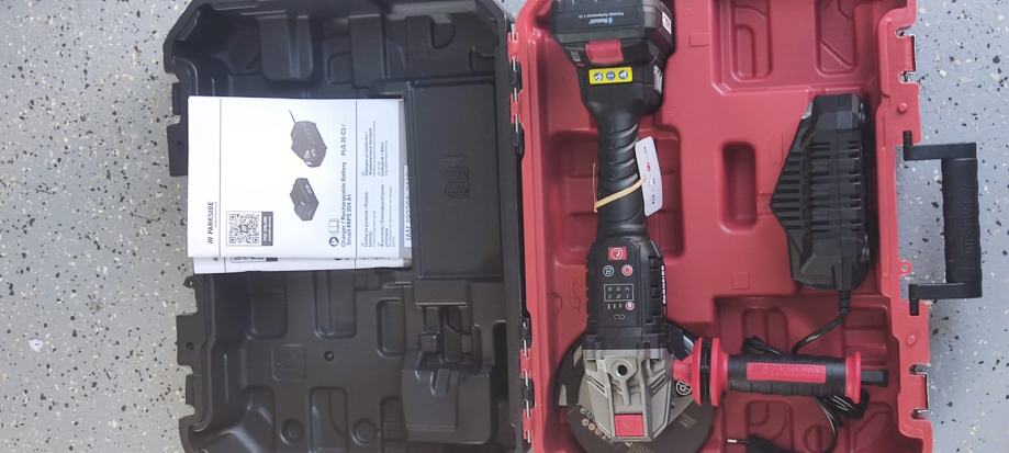 Dolazi s smart baterijom 4Ah i punjačem u koferu,te reznom pločom!