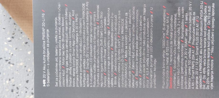 Prodajem aku kutnu brusilicu Parkside performance PWSAP 20 Li F6,novo nekorišteno!