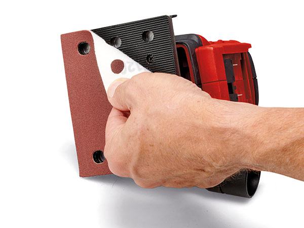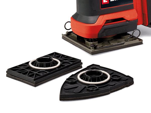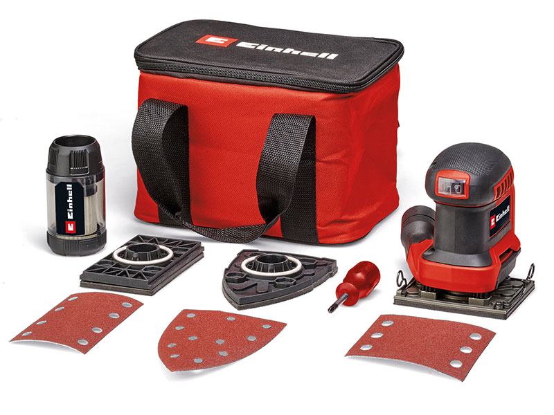 Einhell akumulatorska vibraciona brusilica TE-OS 18/113 3X Li-Solo je kompaktan, snažan član Power X-Change obitelji koji se mogu međusobno fleksibilno kombinirati. Zahvaljujući oscilirajućem krugu od 1,8 mm, snažna aku vibraciona brusilica idealna je za brušenje ravnih površina od drva i materijala na bazi drva te, na primjer, u trenu skine gornji sloj boje ili laka. Isporučuje se s već montiranom brusnom pločom (101x113 mm). Ima izmjenjivi sustav brusnih ploča, a isporučuje se i s izduženom pločom (80x130 mm) i trokutastom brusnom pločom (150x150x100 mm), kao i odvijačem za promjenu ploče. Ukupno 3x brusni papir (P120), odnosno jedan brusni papir po ploči, također je uključeno u opseg isporuke. Brusni papir se može brzo promijeniti pomoću čička i fiksirati bez nabora. Također je integriran stezni uređaj za pričvršćivanje standardnog brusnog papira. Za čist rad, vibraciona brusilica je opremljena integriranim sustavom za usisavanje prašine s kutijom za skupljanje prašine i odvojivim naboranim filtrom. Alternativno, vanjski sustav za usisavanje prašine, npr. može se spojiti Einhell usisavač suho/mokro. Prekidač za uključivanje/isključivanje je zaštićen od prašine. Njegov kompaktni dizajn s mekim površinama za držanje osigurava udobnu upotrebu i optimalno vođenje vibracione brusilice. Akumulatorska vibraciona brusilica TE-OS 18/113 3X Li-Solo isporučuje se bez baterije i punjača. Oni su dostupni zasebno. Solo model – isporučuje se bez akumulatora i punjača