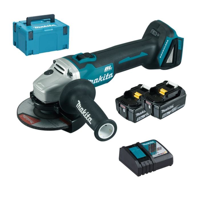 Makita aku kutna brusilica DGA504 je odličan izbor za profesionalce i hobiste. Opremljena je naprednim motorom bez četkica koji će prilagoditi brzinu okretaja te će u svom radu štediti bateriju. Smanjeno kučište omogućuje lako i jednostavno rukovanje. Pri radu s ovom aku kutnom brusilicom koristite brusne i rezne ploče promjera do 125mm. Automatski mijenja brzinu rezanja prema uvjetima opterećenja za optimalan rad. Iznimna sposobnost hlađenja – za izuzetno velika opterećenja. Poboljšana je zaštita od prašine i prskanja vode. DGA 504Z posjeduje indikator napunjenosti akumulatora, gdje možete u bilo kojem trenutku pogledati stanje kapaciteta baterije. Klizni prekidač za uključivanje i isključivanje. Zaštita od ponovnog pokretanja. Napon akumulatora 18 V - LXT Kapacitet akumulatora 1,5 / 2,0 / 3,0 / 4,0 / 5,0 / 6,0 Ah Vrsta akumulatora Li-ion Br. okr. u slob. hodu 8.500 min-1 Provrt brusne ploče Ø 22,23 mm Brusna ploča (Ø) 125 mm Buka: zvučni tlak 79 dB(A) Buka: odstupanje (K) 3 dB(A) Vibracije: brušenje 1,5 m/s² Vibracije: brušenje s anti-vibracijskom ručkom 6,0 m/s² Vibracije: brušenje s normalnom bočnom ručkom 6,5 m/s² Vibracije: odstupanje (K) 1,5 m/s² Dimenzije (D x Š x V) 362 x 140 x 145 mm Masa (prema EPTA) 2,5 kg Obujam isporuke: Aku kutna brusilica DGA504 Punjač DC18RC Akumulator 2 x BL1850B 5,0Ah Makpac kofer
