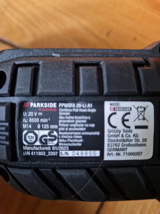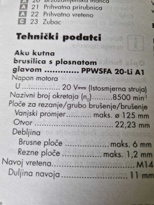 Parkside aku kutna brusilica s plosnatom glavom 20V PPWSFA 20-Li-A1
