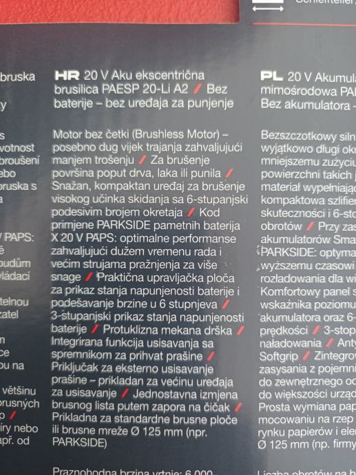Parkside 20V Akku excentrična brusilicaPAESP 20-Li A2 - novo Račun i 5 godina garancija