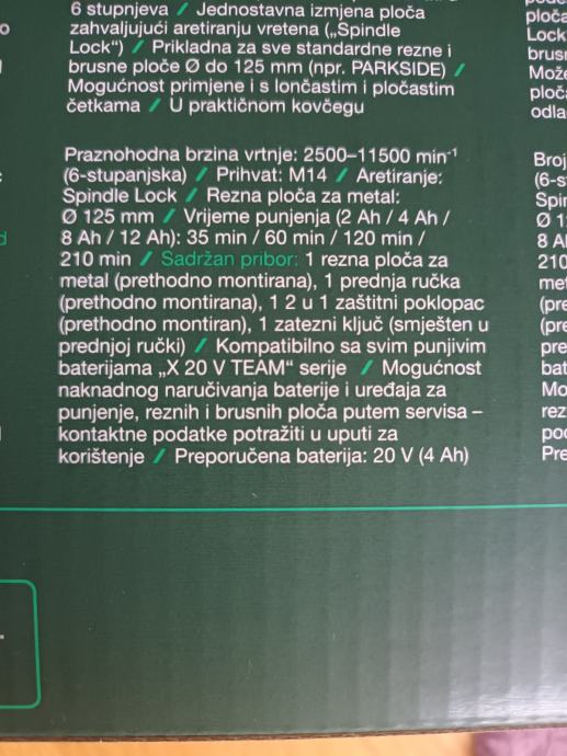 Uređaj ne uključuje bateriju i punjač samo brusilica s ručkom i reznom šajbom u koferu.