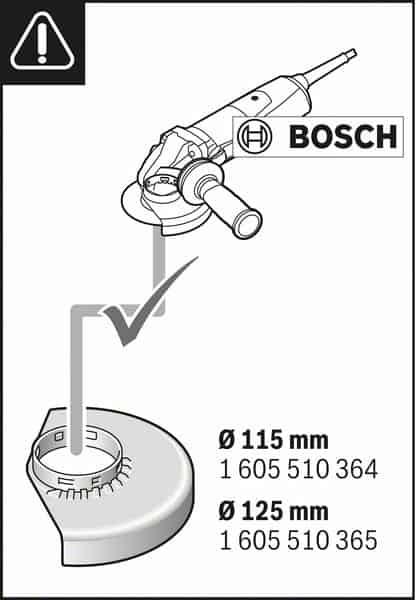 Kompatibilno GWX…-115; GWX…-125; GWX 18V -… (Ø 115/125 mm); GWS 11-125 – GWS 19-125; GWS 1000 – GWS 1400; GWS 18V-10 (Ø 115/125 mm); GWS 18V-15 (Ø 125 mm); GWS 18V-115; GWS 18V-125