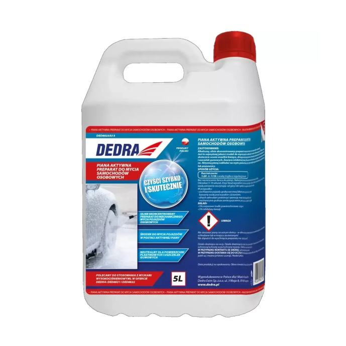 Alkalni visokokoncentrirani pripravak za mehaničko pranje putničkih vozila. Najkvalitetniji je deterdžent za pranje osobnih vozila u obliku aktivne pjene. Obilna pjena učinkovito uklanja svu prljavštinu s ceste. Neutralno prema plastičnim površinama i gumenim brtvama. Sadrži inhibitore korozije. Ne sadrži fosfate, čuva okoliš. Industrijska kvaliteta. Za najbolje rezultate, napravite otopinu koncentracije od 1:20 do 1:10 s vodom; bez razrjeđivanja (koplje za pjenu) Značajke: Koncentrat za miješanje s vodom
