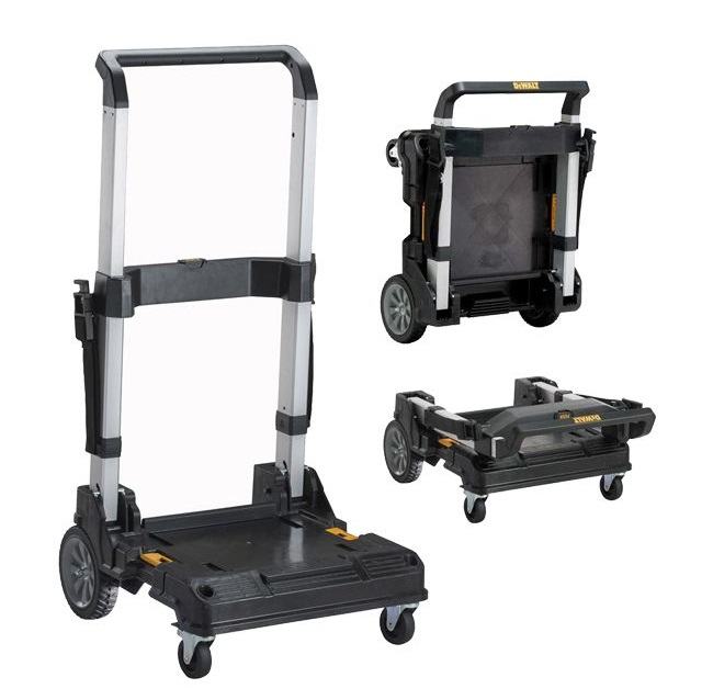 2 prednja kotačića zakretna za 360° za maksimalnu pokretljivost Pojas za dodatno sigurno skladištenje Kapacitet težine od 100kg Teleskopska aluminijska ručka Ergonomska ručka s 3 položaja Zasuni za slaganje - kompatibilni sa svim TSTAK modulima Sklopivo Za kompaktno i jednostavno skladištenje 2 stražnja kotača punjena zrakom za teške uvjete rada za maksimalnu upravljivost