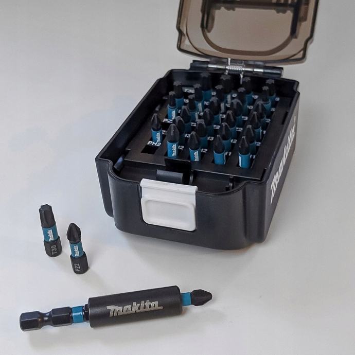 Kvalitetni bitovi namjenjeni za bušilice i udarne odvijače Obujam isporuke 30komada bitova dužine 25mm i 1kom magnetski držač bita 2×PH1 5×PH2 2×PH3 2×PZ1 5×PZ2 2×PZ3 3×T15 3×T20 3×T25 3×T30 60 mm magnetski držač