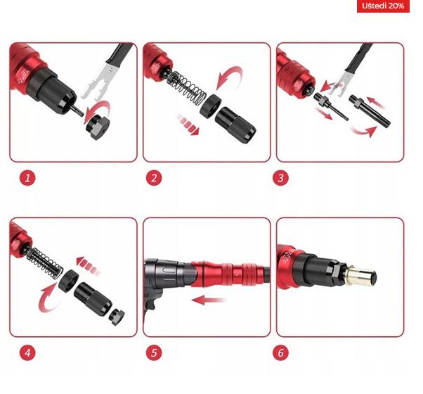 Metalni adapter za bušilicu - odvijač za zakivne matice M3 - M10