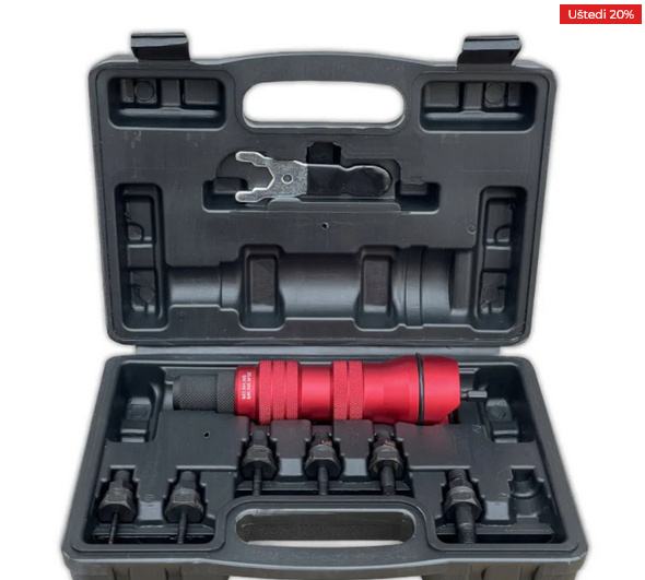 Adapter za zakivne matice omogućuje vam jednostavno i brzo pričvršćivanje zakivnim maticama uz pomoć standardnog odvijača ili bušilice. Izrađen od čelika, ovaj alat ima izuzetno čvrstu konstrukciju i dolazi u praktičnom plastičnom koferu za lak transport i skladištenje.