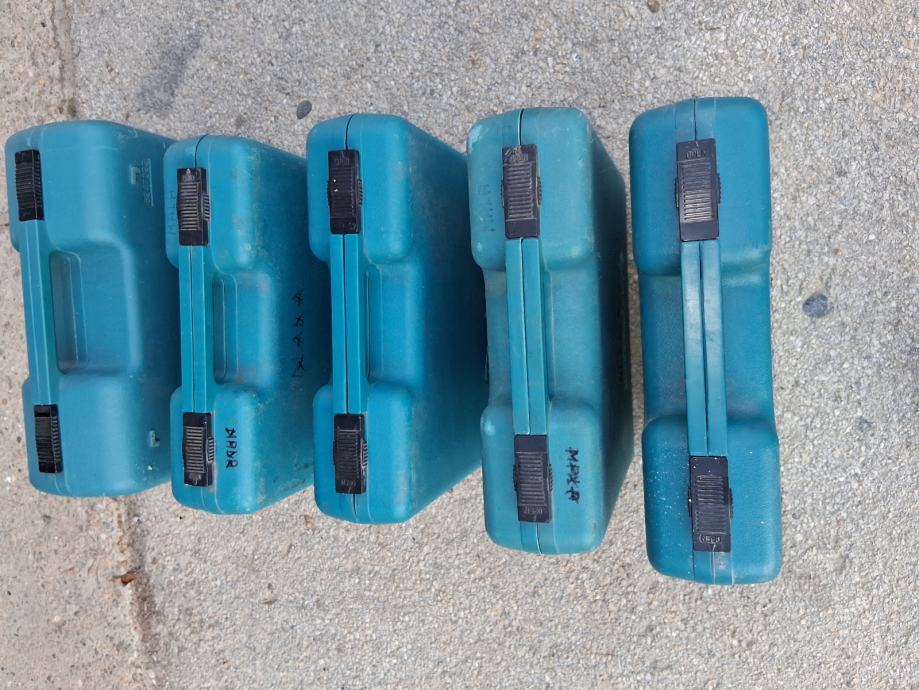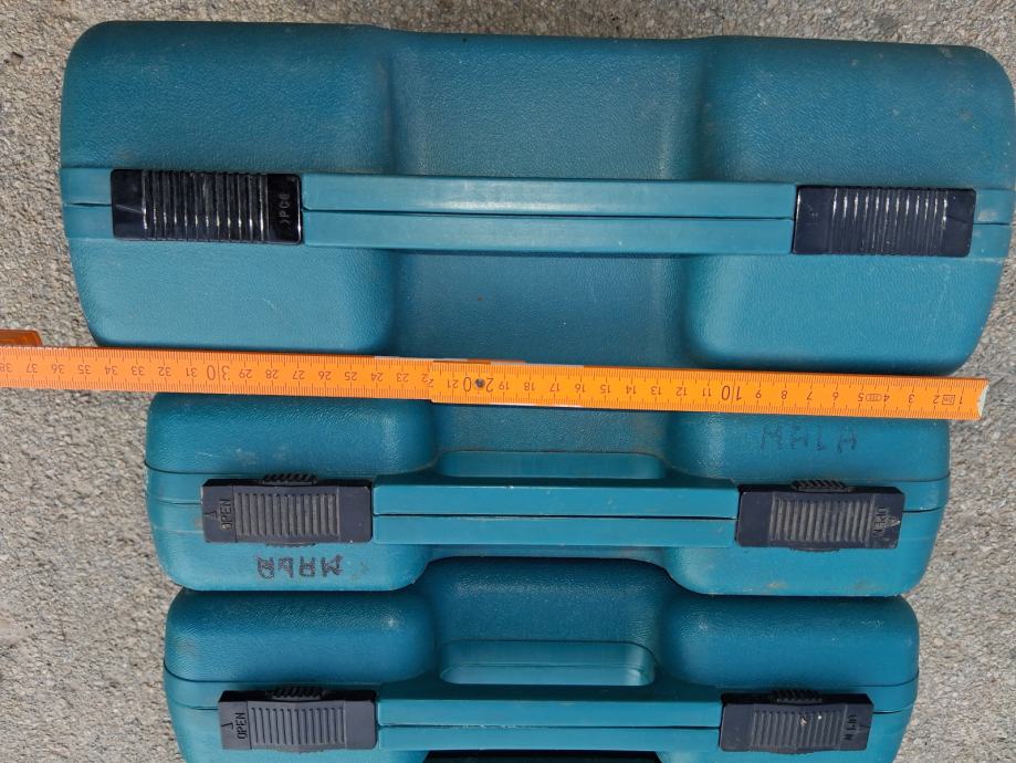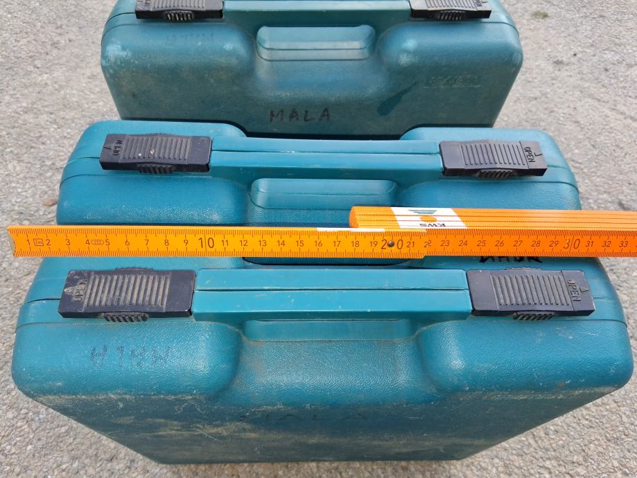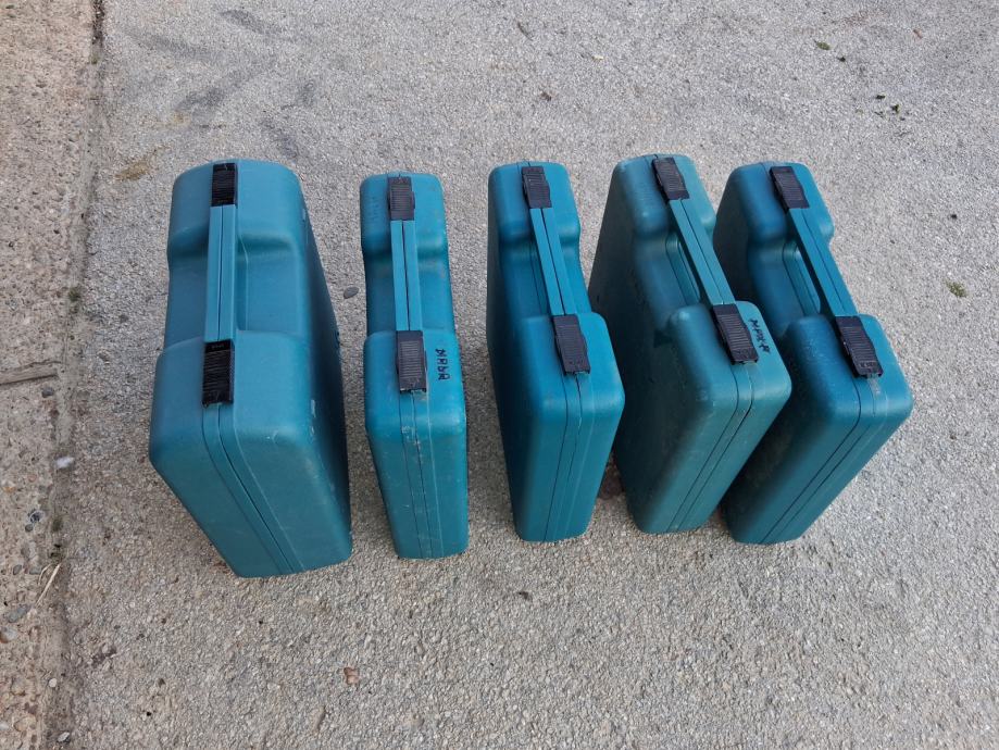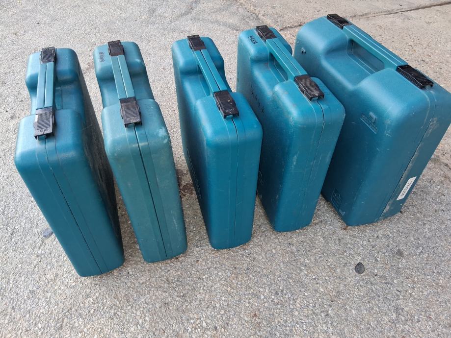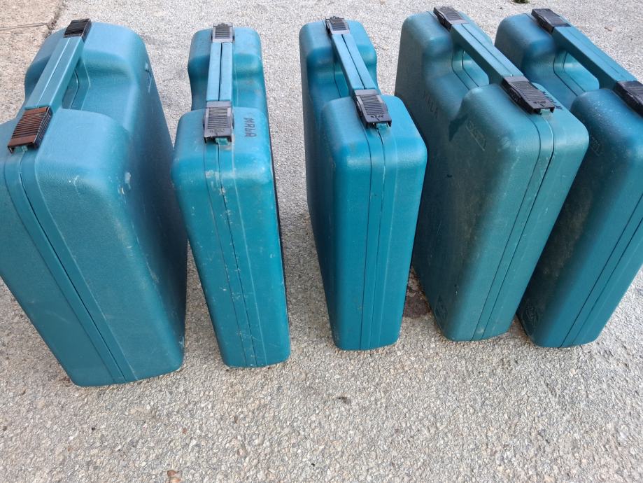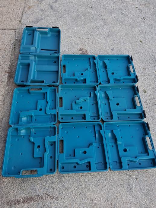 Prodajem 5 kofera za alat, 4 su potpuno isti a jedan je nesto veci. Čvrsti su, nisu puknuti, imaju pregrade, zatvaranje kopcama je ispravno. Veci 7 e, 4 manja po 6 e.