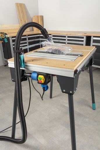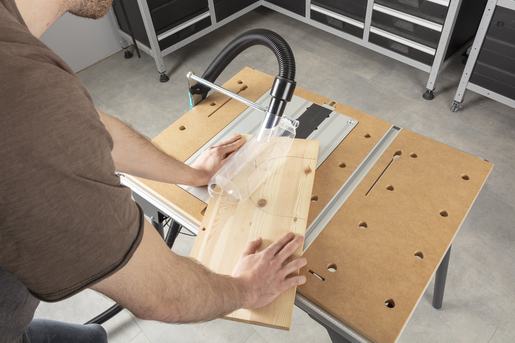 Kompaktni stol za pričvršćenje električnih ručnih alata MASTER cut 2200 ujedinjuje četiri funkcije u jednom proizvodu. Nudi mogućnosti primjene kao stolna kružna pila, stol za ubodnu pilu, radna stanica te – s opcijski dostupnim priborom – kao stol za glodanje. Zbog svoje vrlo kompaktne transportne veličine od 800 x 580 x 200 mm i male težine od 17 kg, mobilan je, može se koristiti bilo gdje i može se skladištiti na način koji štedi prostor. Noge se mogu fleksibilno uvući ili izvući pomoću funkcije uticanja s brzim pričvršćivanjem pomoću ekscentrične poluge, npr. za transport ili rad na zemlji. Nakon izvlačenja spremaju se u prostor u držačima ispod ploče stola, gdje se učvršćuju čičak trakama.