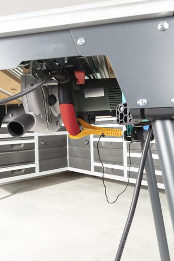 Napomena: Općenito se u stol MASTER cut ne smiju ugrađivati akumulatorski strojevi jer se oni ne mogu priključiti na sigurnosnu sklopku.