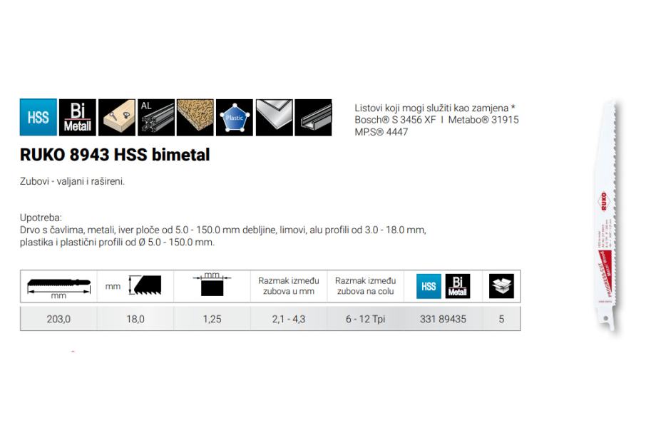 Ruko list sabljaste pile 200mm 89435