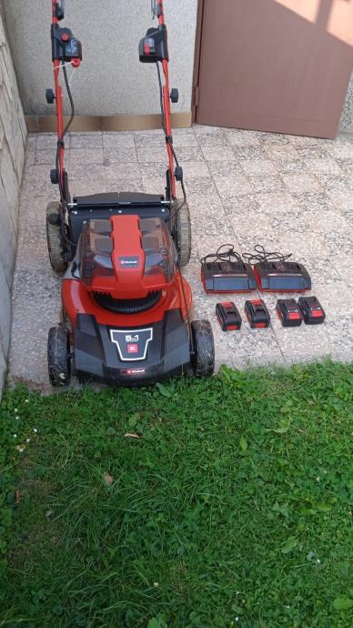 Einhell akumulatorska samohoda kosilica s košarom i 4 baterije po 4 Ah i 2 dupla punjača.