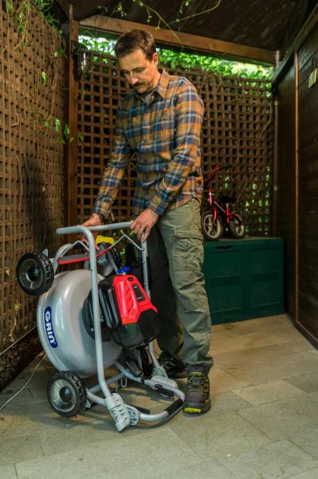 Goljat Grin BM53A-82V je kosilnica z pogonom, opremljena z električnim motorjem Cramer, ki ga napaja 82 V litij-ionska baterija.