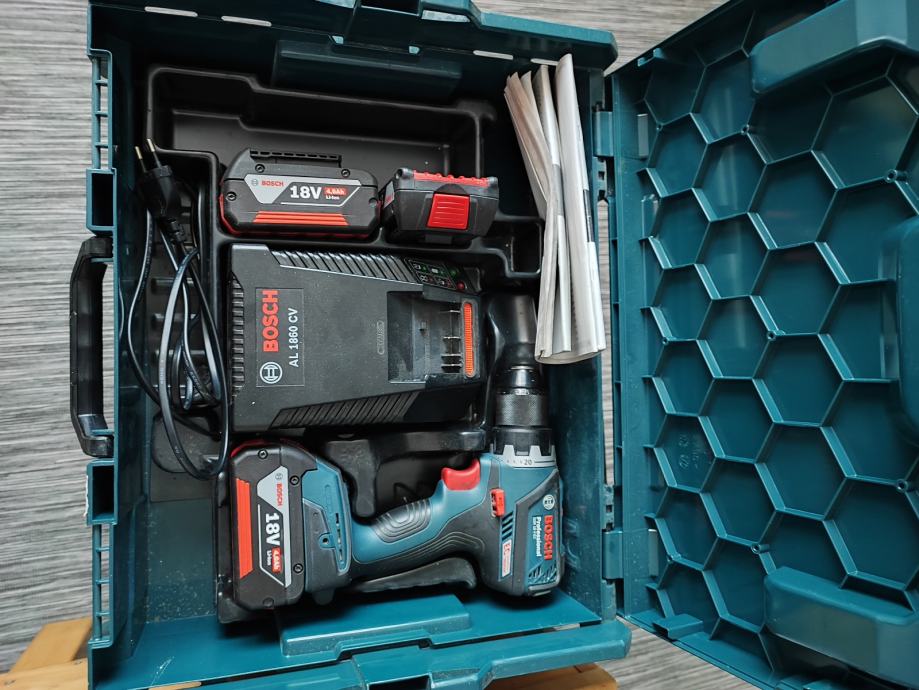 BOSCH GSR 18 V-EC u kompletu sa pripadajućim L-BOXX koferom i punjačem baterija te LI-ION baterijama