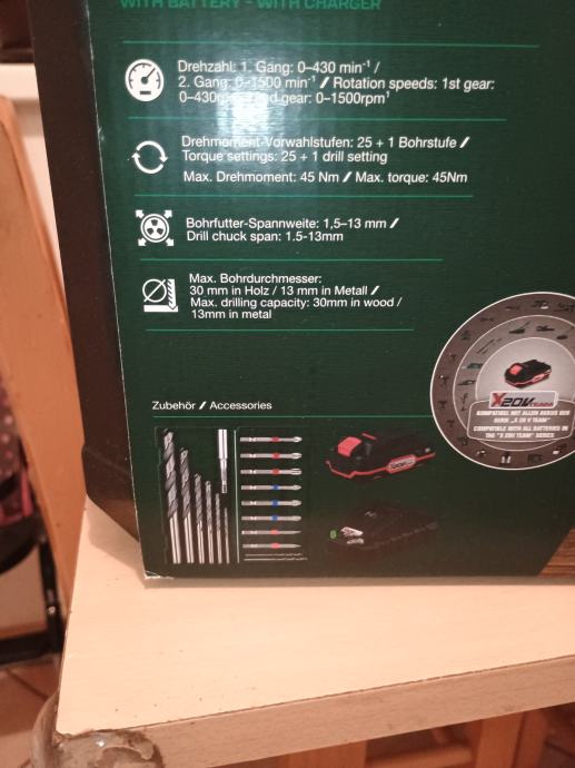(bušilica, punjač, bitovi i kutija) sa računom.