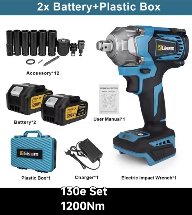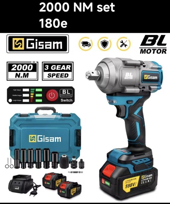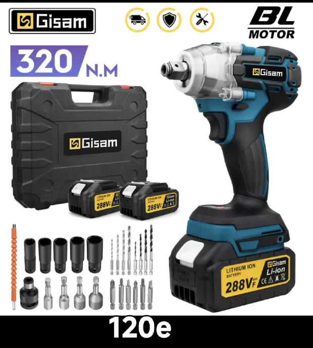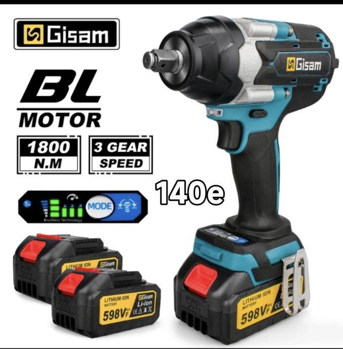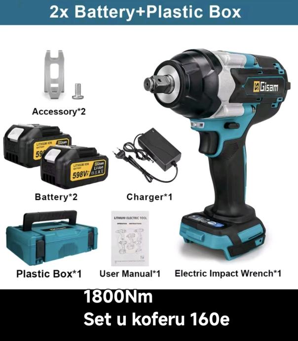 Aku udarni odvijač set 2 baterije,punjac,kutija. 1800Nm 140e.u koferu 160e.